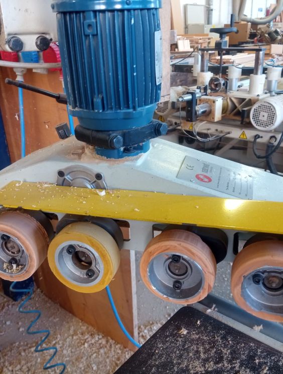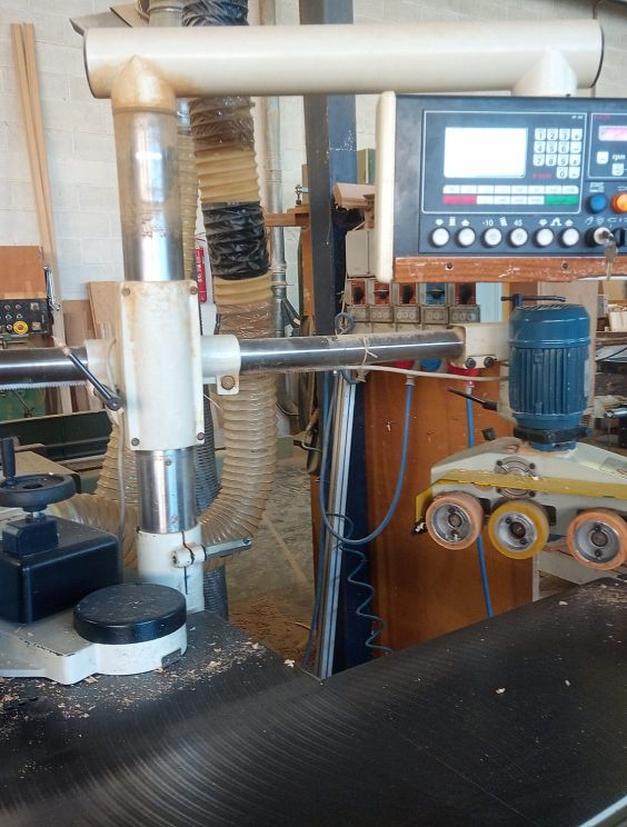 – guida toupie tipo ‘ FLEX ‘con movimentazione a volantino in entrata , spostamento elettrico mediante motore in continuo per la traslazione della guida