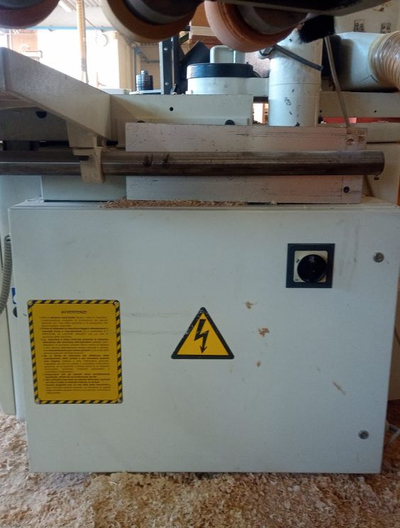 – lunghezza 2500mm, completo di barra per appoggio anteriore registrabile per pezzi di grandi dimensioni, e con pulsante di emergenza
